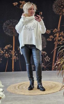 Pull col roulé motif arbre de vie
